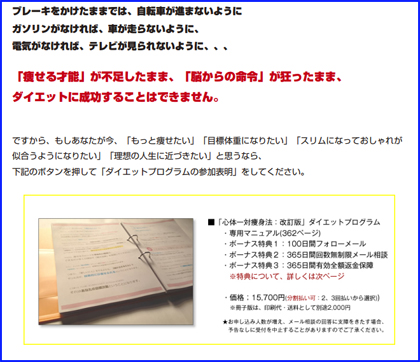 体も心も無理することなく、自然に痩せる事が出来る「心体一対痩身法:改訂版」はこれまでダイエット法しか教えなかった時に比べて、体重が落ちるスピードがビックリするほど早まったこのダイエットプログラムでやることはいたってシンプル。